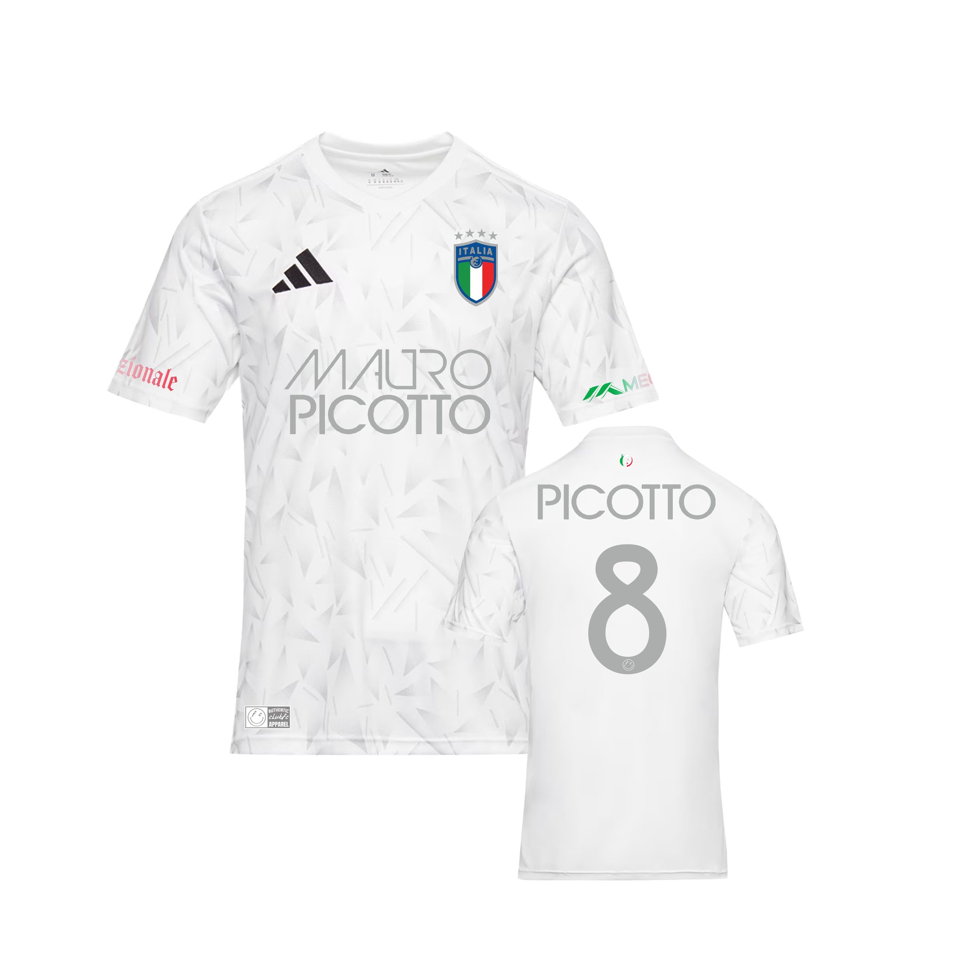 Celebrate the legacy of a true trance pioneer with this exclusive Mauro Picotto football shirt. Designed as a tribute to his Italian roots, the shirt proudly features an Italian-inspired team crest, while the striking black and gold colourway brings pure class and festival-ready energy.