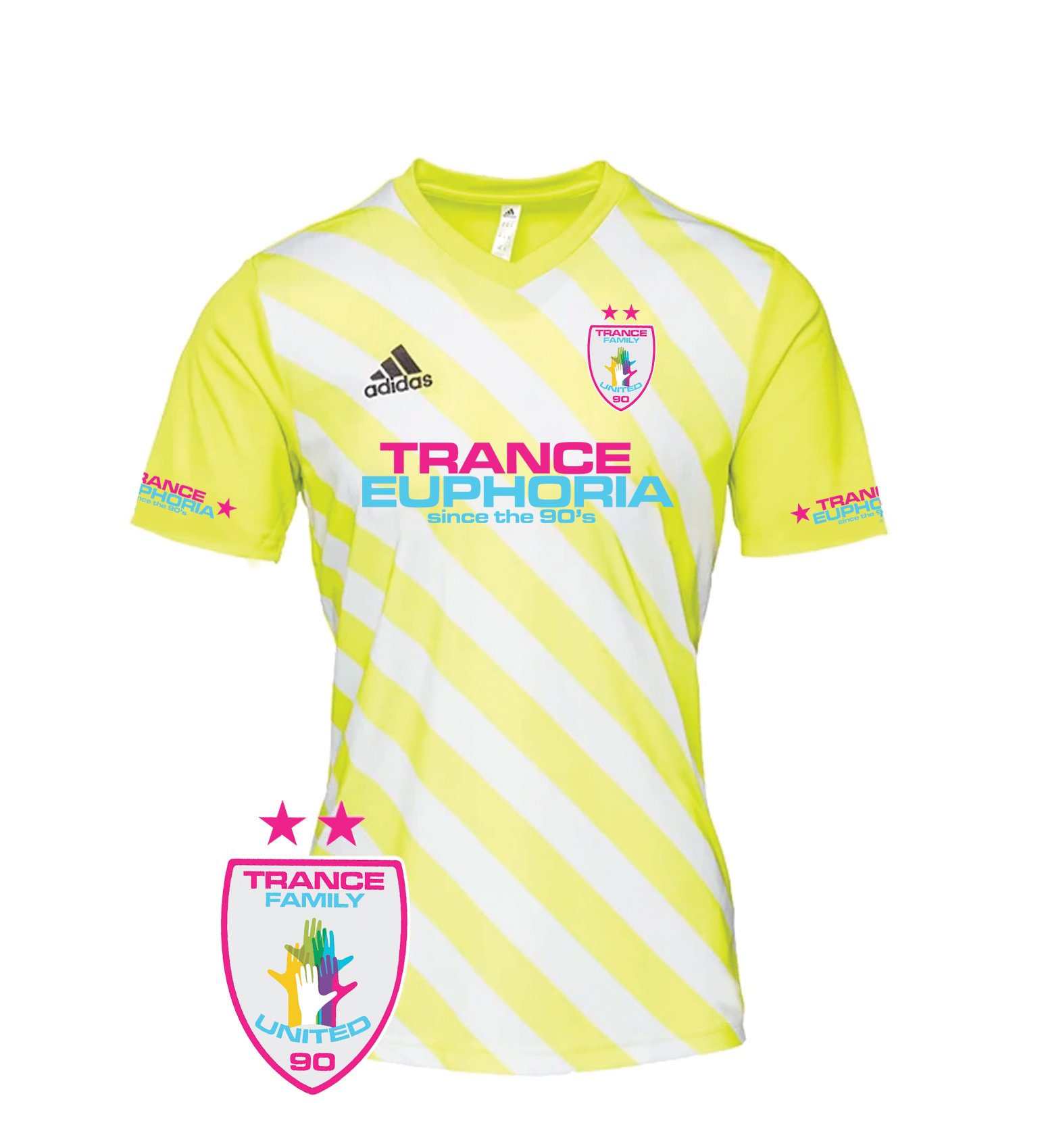 Trance Family UTD. Who doesnt like euphoric trance from the 90's?!! Genuine Adidas Aeroready jersey to wick away the moisture whilst you throw out shapes to the classics of the past. This is one of my personal favourites due to the bright colours and striking pattern. Printed in high quality print to ensure colour accuracy. An absolutely belting jersey. *The photo show Marcella Woods rear of the jersey but you can choose your own name or have it blank. Just let us know when you buy by leaving a note*.