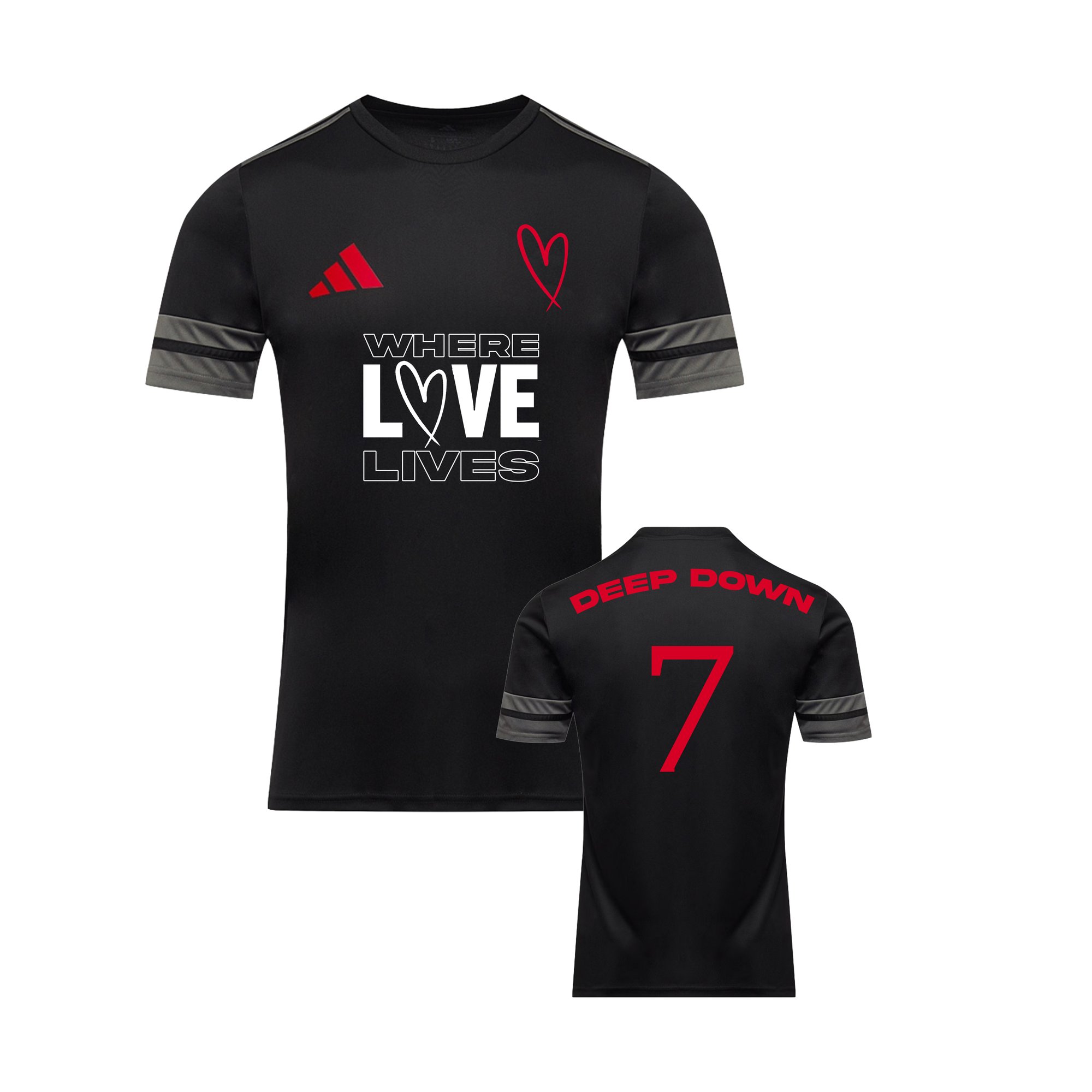 Our Where Love Lives Club FC shirt celebrates one of house music’s most uplifting anthems. The iconic lyric sits boldly across the chest, paired with a heart-shaped team badge inspired by the emotion and energy of Alison Limerick’s classic.