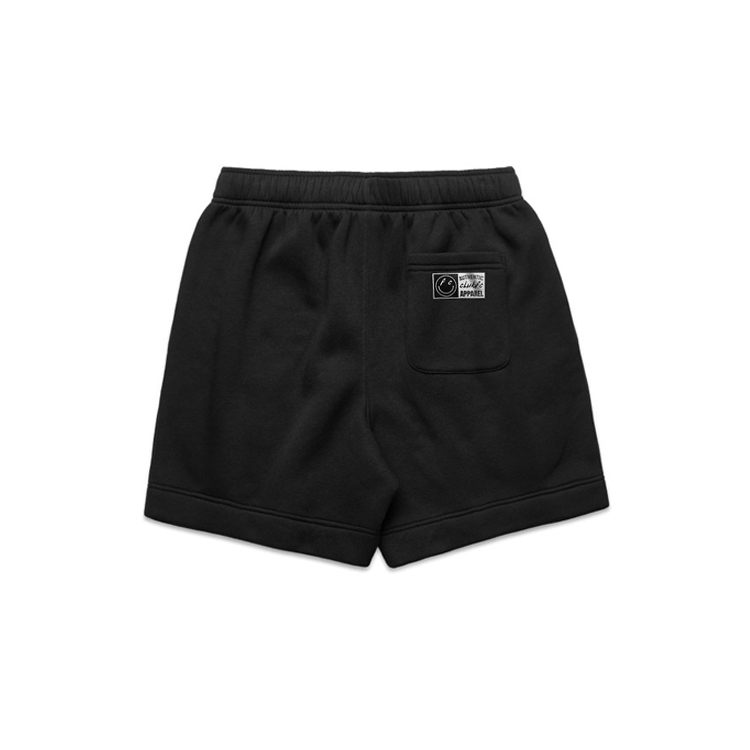 Construction: Sweat shorts with two side pockets and one back pocket, 2x2 ribbed waistband, tonal external drawcord, and double-needle hems